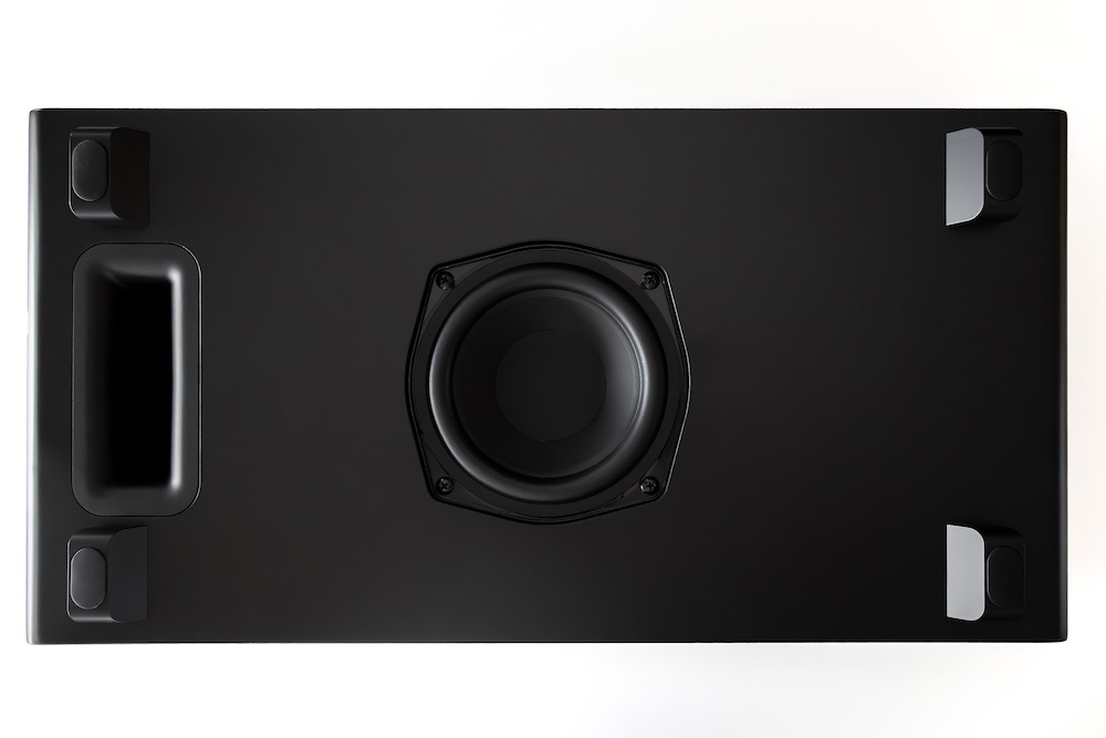 De handgeschuurde houten behuizing met lage‑resonantiestructuur en het lasergesneden aluminium front zorgen voor een stille, solide basis voor de drivers – en een tijdloze look in matzwart die overal past.