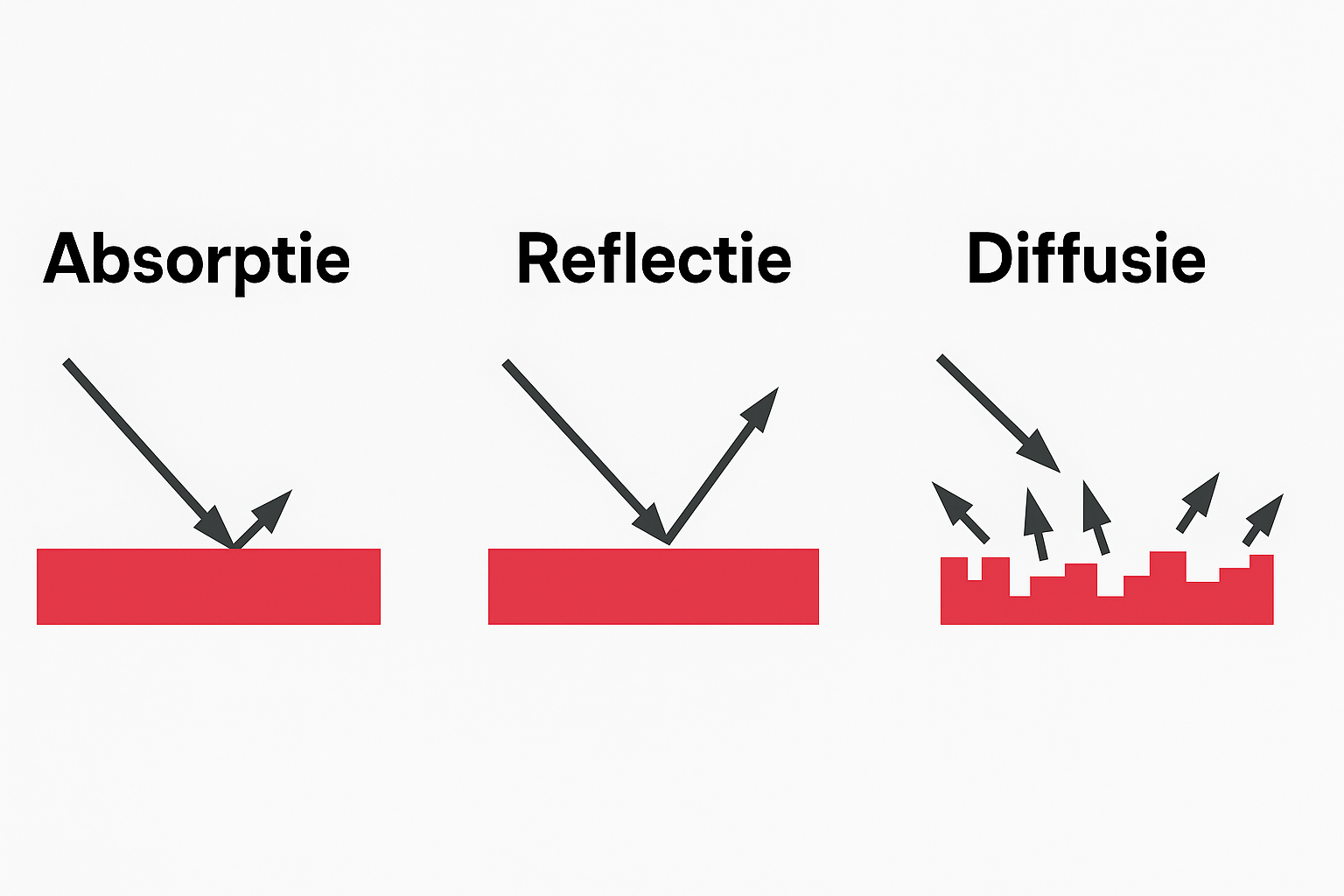 Een goede akoestiek ontstaat door een slimme balans tussen deze drie reacties. Laten we de twee belangrijkste begrippen – absorptie en diffusie – iets verder toelichten.