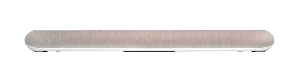 De lage, slanke vorm past subtiel onder je tv of op een dressoir. Het minimalistische aluminium chassis met ton-sur-ton stof gaat op in je interieur, terwijl de soundbar dankzij automatische oriëntatie overal optimaal presteert.
