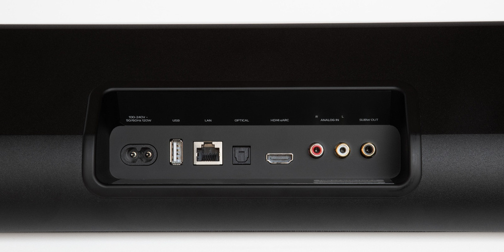 De lage, slanke vorm past subtiel onder je tv of op een dressoir. Het minimalistische aluminium chassis met ton-sur-ton stof gaat op in je interieur, terwijl de soundbar dankzij automatische oriëntatie overal optimaal presteert.