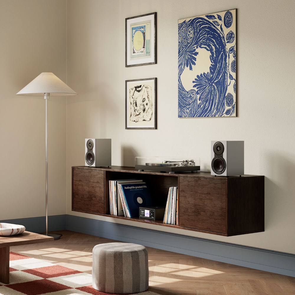 Breed afstraalgedrag houdt de klank in balans, ook buiten de ‘sweet spot’. Werkt op stands, in een boekenkast of met wandmontage.